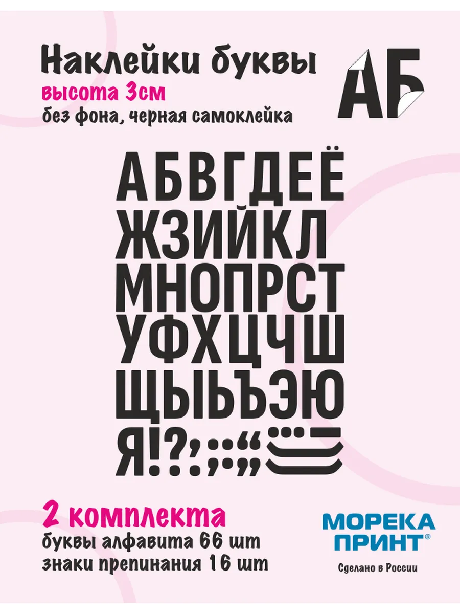 Представляем вам набор наклеек "Русский алфавит" от МорекаПринт – настоящий клад для творчества и обучения! В этом наборе вы найдете два комплекта алфавита с буквами высотой 3 см и два комплекта знаков препинания, которые станут незаменимыми помощниками в самых разных ситуациях. Вырезанные по контуру буквы и знаки препинания, готовы украсить ваши проекты, тетради, подарки и многое другое. Каждая буква вырезана, не имеет фона, что позволяет легко наклеить ее на любую поверхность, и это будет выглядеть стильно!