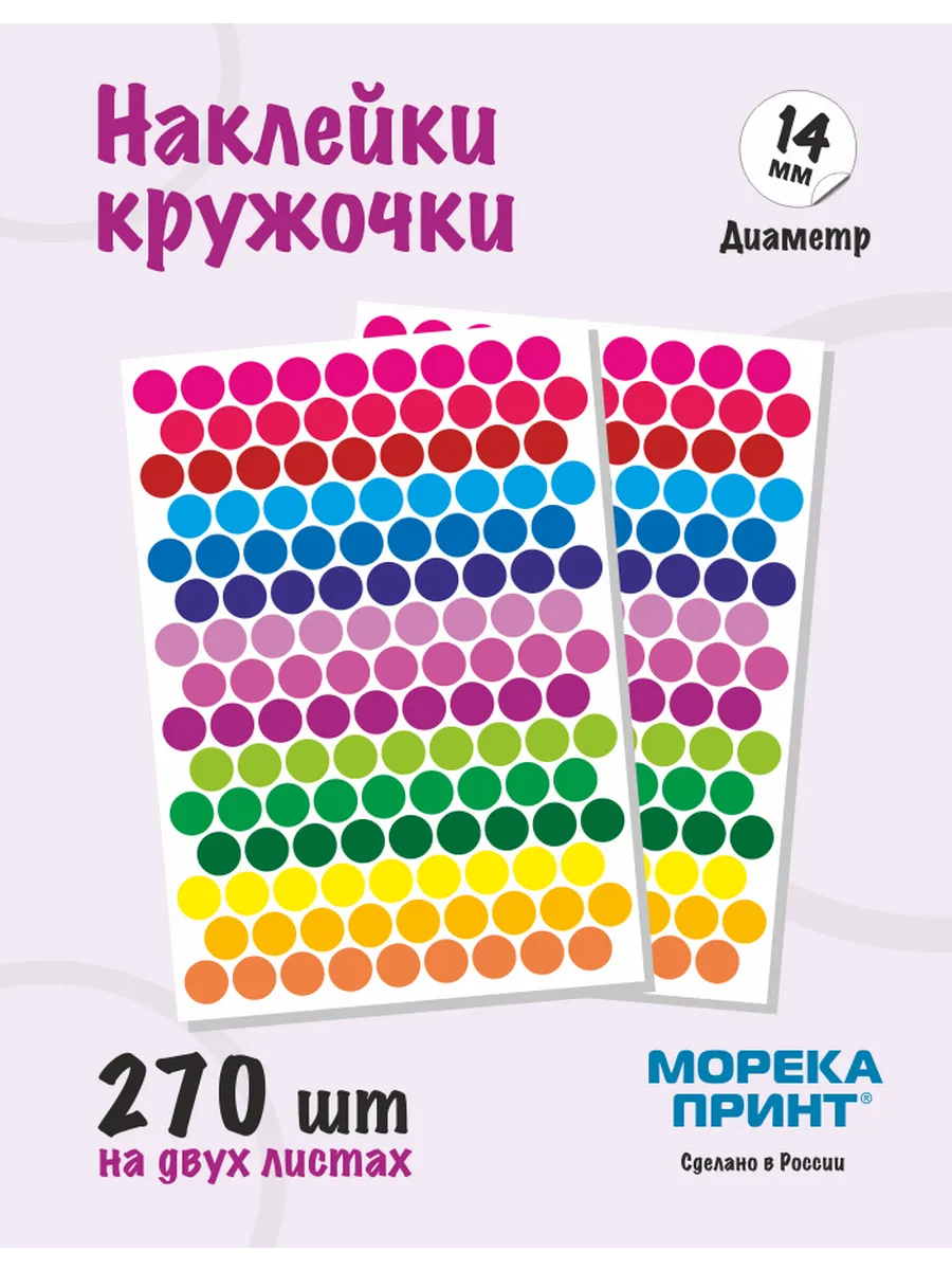Представляем вам набор наклеек из кружочков от бренда "МорекаПринт" - настоящий праздник цвета и творчества! В этой упаковке вас ждут целых 270 ярких цветных кружочков диаметром 14 мм, готовых вдохновить вас на новые идеи. Представьте, сколько возможностей открывается перед вами: украсить блокноты, добавить акценты в ежедневник, создать уникальные поделки для скрапбукинга или просто разбавить серые будни яркими красками. Эти наклейки станут незаменимыми помощниками в играх и обучении, помогая малышам упорядочивать свои коллекции, учить цвета и развивать мелкую моторику. А еще они просто созданы для того, чтобы радовать глаз! Красный, синий, зеленый, желтый, фиолетовый - выбирайте свой любимый цвет и творите! Наклейки изготовлены из качественной самоклеящейся пленки, поэтому легко крепятся к любой поверхности и держатся надежно. С ними маркировка станет не просто рутиной, а увлекательным процессом.
