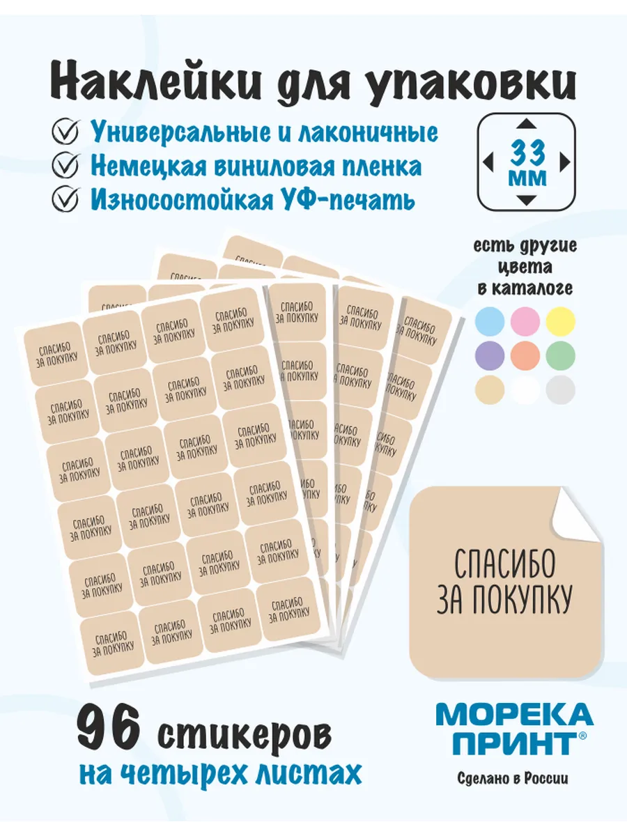 Наклейки для упаковки товаров от бренда МорекаПринт - это идеальное решение для продавцов и хендмейкеров, которые хотят добавить завершающий акцент к своей упаковке. Эти самоклеящиеся стикеры выполнены в элегантном дизайне, добавляющие профессиональный и презентабельный вид вашей упаковке. Стикеры для упаковки отлично подойдут для коробок и футляров, подарков и конвертов, а также для упаковки изделий ручной работы или подарков к любому празднику, такому как Новый год, 23 февраля, 8 марта и на корпоративные мероприятия.