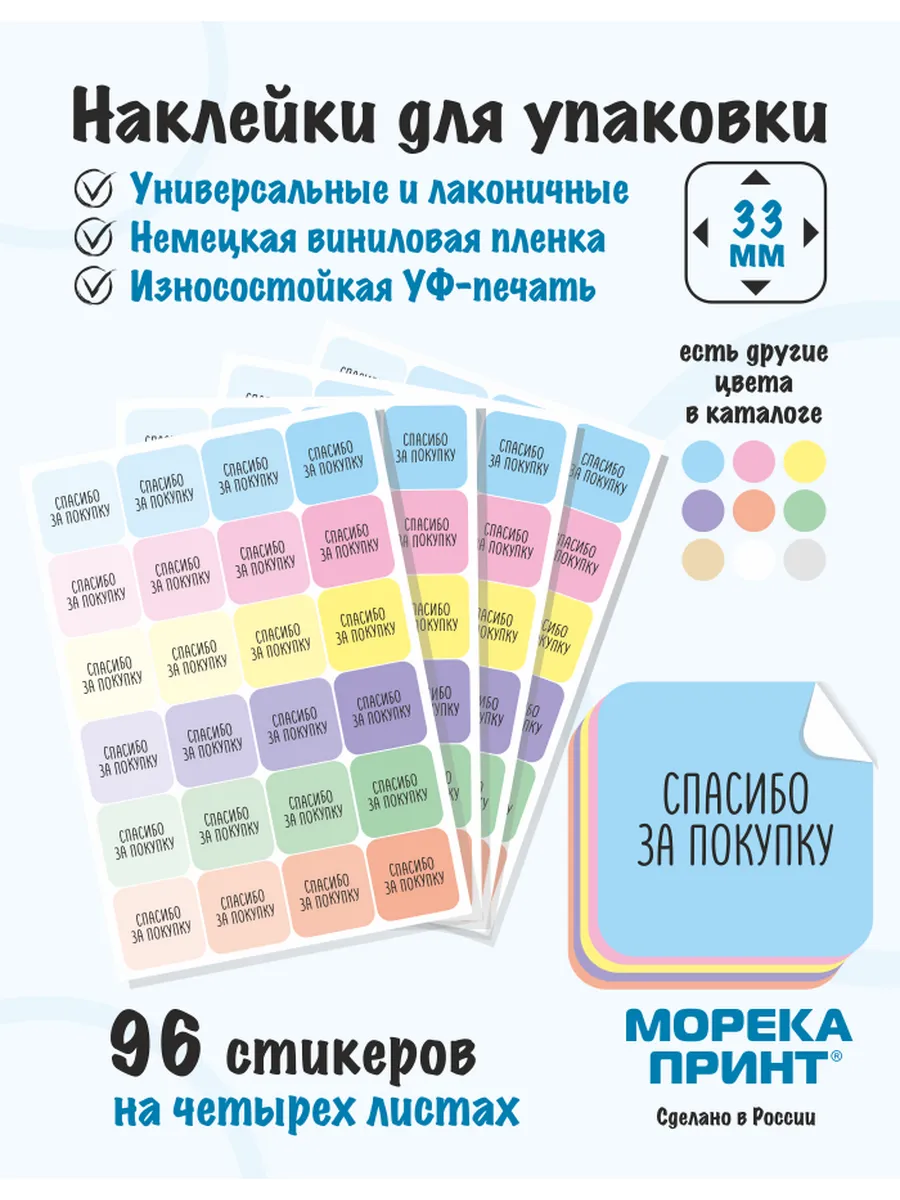 Наклейки для упаковки товаров от бренда МорекаПринт - это идеальное решение для продавцов и хендмейкеров, которые хотят добавить завершающий акцент к своей упаковке. Эти самоклеящиеся стикеры выполнены в элегантном дизайне, добавляющие профессиональный и презентабельный вид вашей упаковке. Стикеры для упаковки отлично подойдут для коробок и футляров, подарков и конвертов, а также для упаковки изделий ручной работы или подарков к любому празднику, такому как Новый год, 23 февраля, 8 марта и на корпоративные мероприятия.