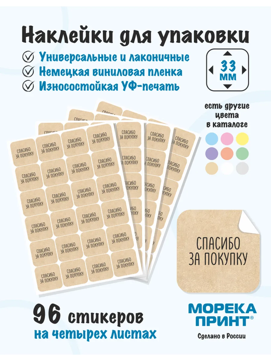 Наклейки для упаковки товаров от бренда МорекаПринт - это идеальное решение для продавцов и хендмейкеров, которые хотят добавить завершающий акцент к своей упаковке. Эти самоклеящиеся стикеры выполнены в элегантном дизайне, добавляющие профессиональный и презентабельный вид вашей упаковке. Стикеры для упаковки отлично подойдут для коробок и футляров, подарков и конвертов, а также для упаковки изделий ручной работы или подарков к любому празднику, такому как Новый год, 23 февраля, 8 марта и на корпоративные мероприятия.