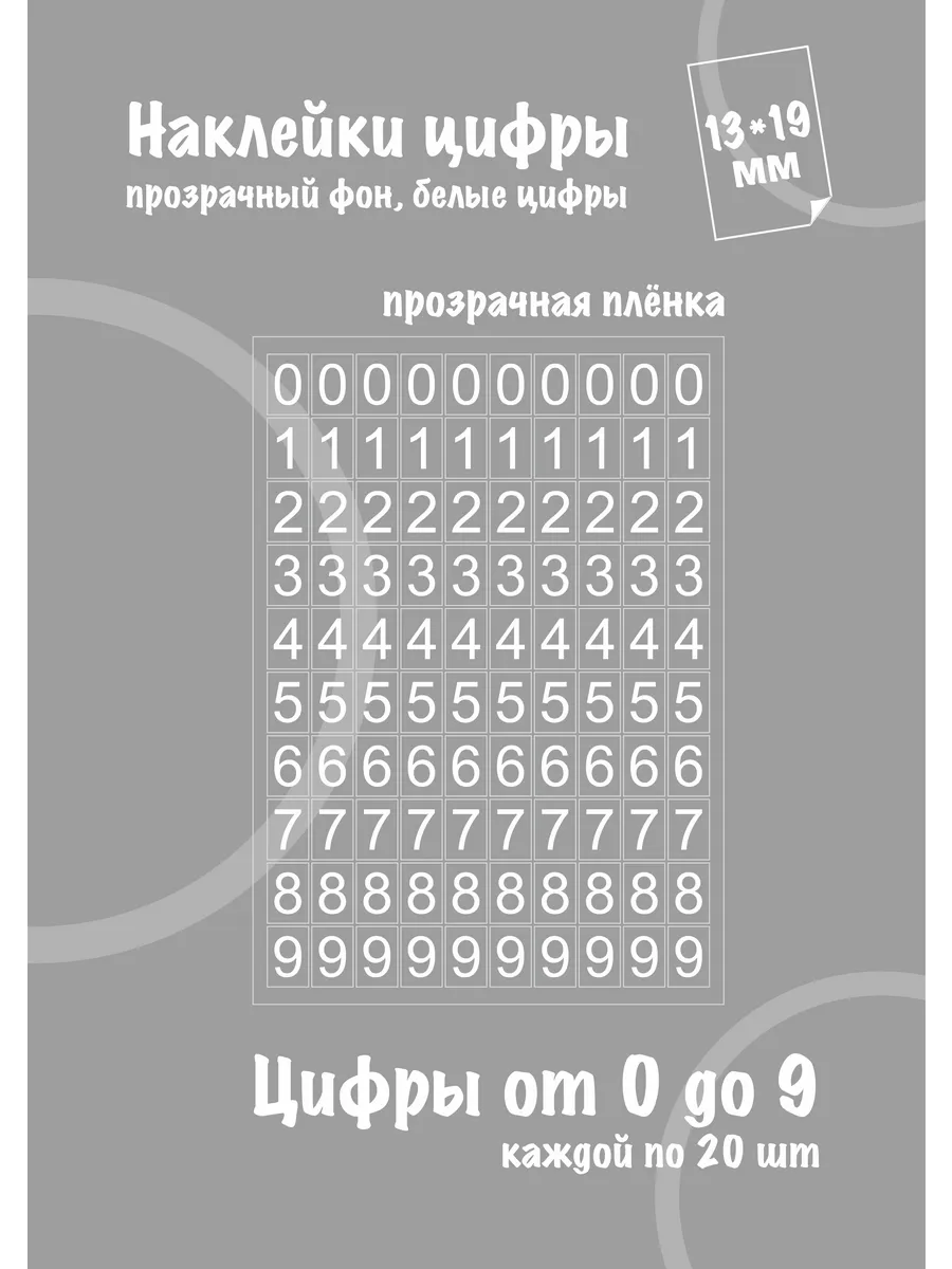 Каждая цифра расположена на прозрачном прямоугольном фоне размером 13*19мм (1,3*1,9см).