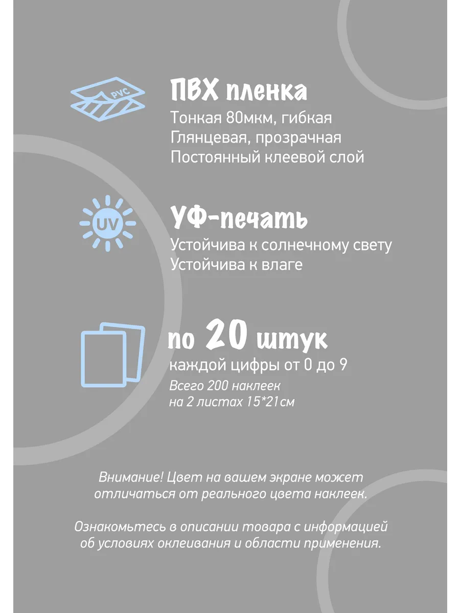 Наклейки с цифрами от 0 до 9 для нумерации и маркировки. Каждой цифры по 20 шт.