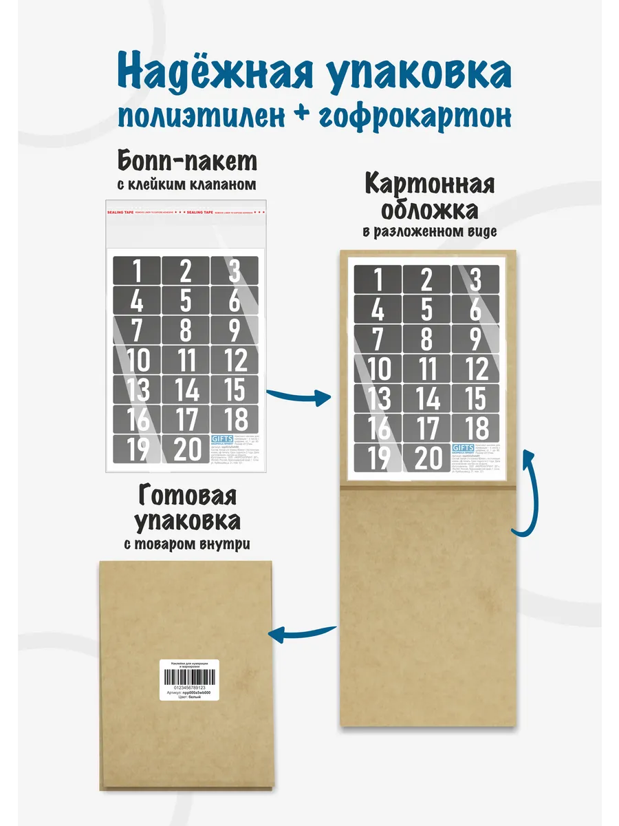 Наклейки хорошо упакованы в полиэтиленовый бопп пакет и в картонную обложку, чтобы защитить продукцию во время транспортировки.